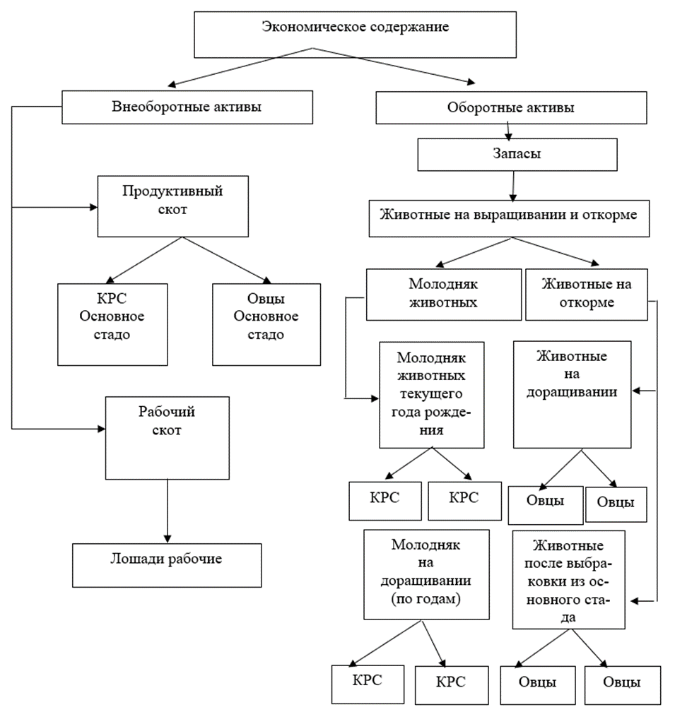 Во многих сельскохозяйственных организациях, учет животных на выращивании и откорме ведётся по укрупнённым группам: крупный рогатый скот, овцы в разрезе половозрастных групп [8, с.7].