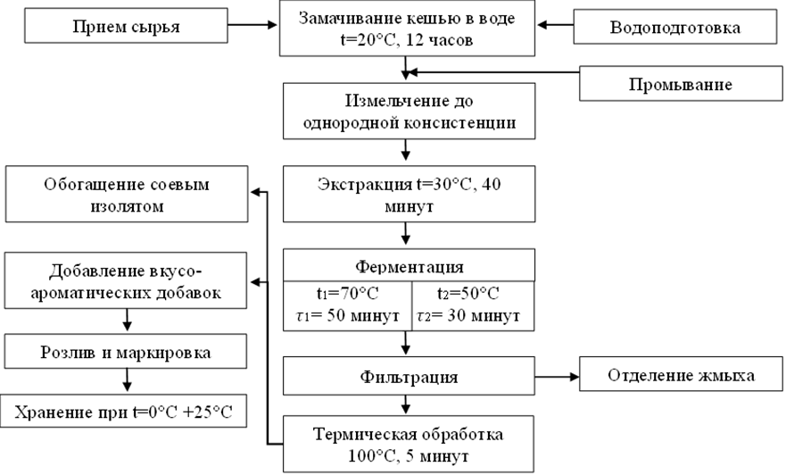 Разработка технологии и машинно-аппаратурной схемы ферментированного растительного напитка из кешью с применением двухступенчатой ферментации