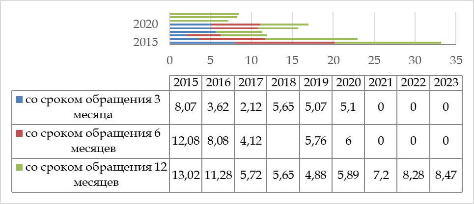Рисунок 1- Объемы продаж ГКВ по срокам обращения