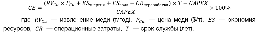 Abstract: The article presents an advanced methodology for implementing circular economy at Russian copper enterprises using FMEA risk analysis of waste recycling (slags, anodes, tailings) and ROI/NPV calculations. Efficiency formula CE=(RV+ES-CR)/CW×100% was applied to 6 cases (ERG, Aurubis, Russian copper scrap, Guixi, Norilsk Nickel, UGMK). Results show 22–27% cost savings, 62% CO₂ reduction, 320–450% ROI with 85 billion RUB CAPEX for 10 GOKs. Methodology ensures resource independence for 150+ years and 2.5 billion USD export potential by 2035.